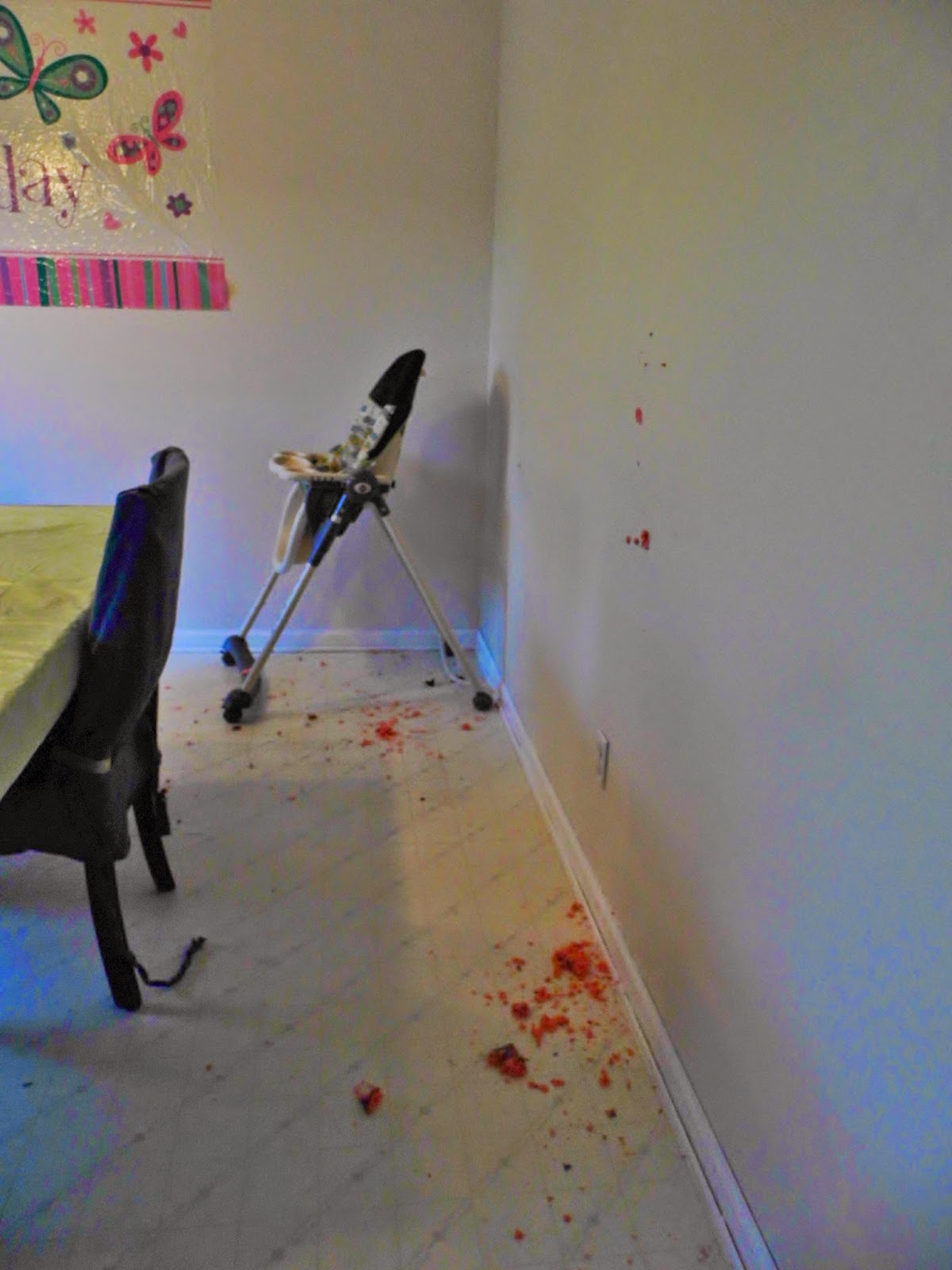 This is the aftermath, we had to leave the cake overnight to dry before we could finally finish cleaning up from the most excited first birthday party ever!